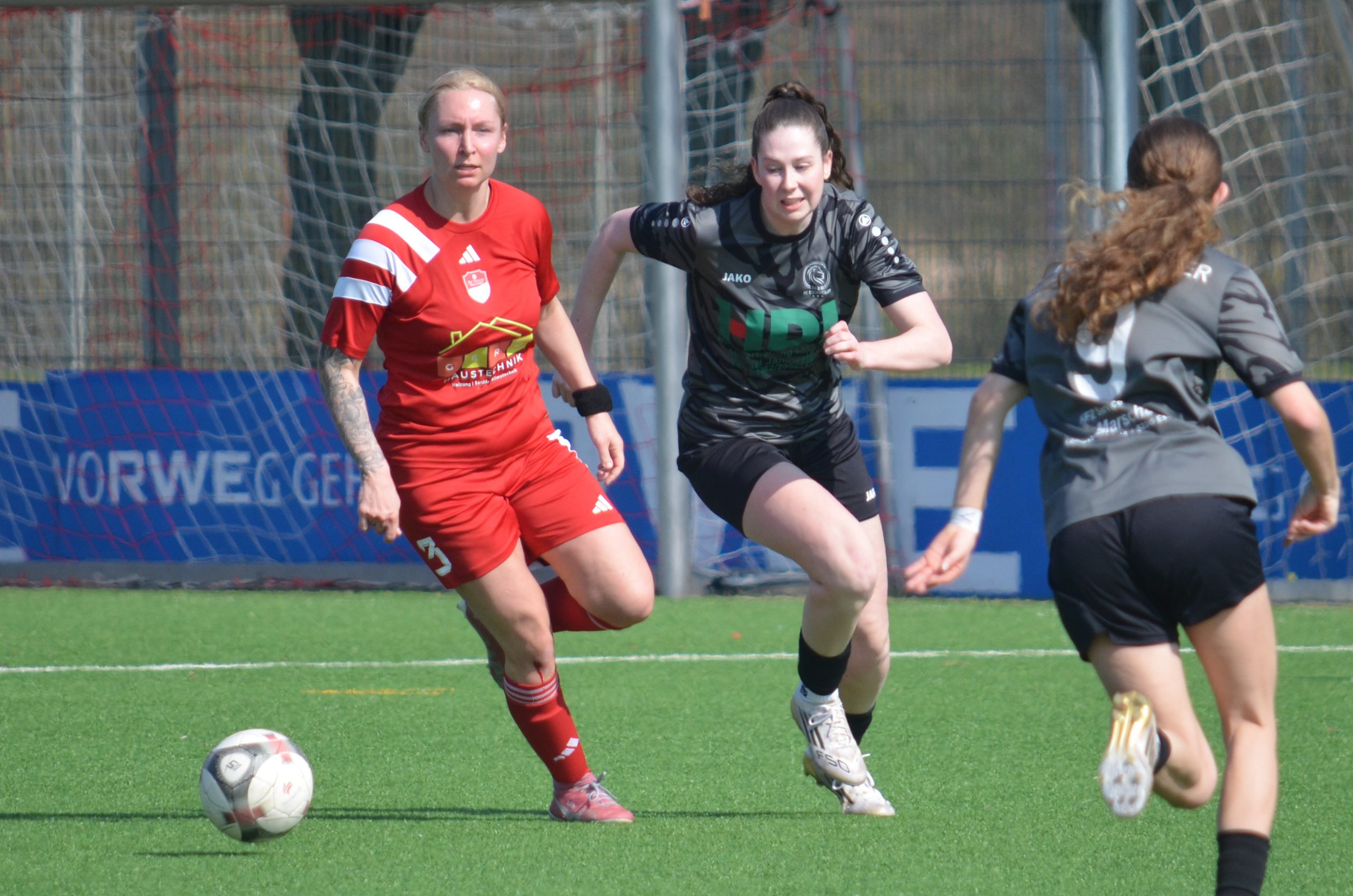 Die erste Damenmannschaft des FC Eschweiler wollte im heimischen Sportpark im dritten Spiel in Folge drei Punkte einfahren, um damit auch den Abstand zu ihren Gegnerinnen vom SV Waldenrath/Straeten II weiter auszubauen. Und von Beginn an war dem Smolarski-Team auch der unbedingte Wille anzumerken, das Duell der Tabellennachbarn für sich zu entscheiden. Allerdings kam es anders als geplant, denn die Gäste aus Waldenrath erzielten nicht nur das 1:0 (16.) zur Halbzeitführung, sondern erhöhten acht Minuten nach Wiederanpfiff sogar auf 2:0 – trotz spielerischer Übergelegenheit und deutlich mehr Ballbesitz der FCE-Frauen. Nachdem die Gastgeberinnen zunächst einige gute Chancen nicht nutzen konnten, erzielte Joline Kreutz in der 70. Spielminute das Anschlusstor und Dana Jansen 14 Minuten später den zu diesem Zeitpunkt hochverdienten Ausgleich. Für den umjubelten 3:2-Siegtreffer sorgte schließlich kurz vor Ende der regulären Spielzeit Kapitänin Jenna Rychlik, die in der laufenden Saison zum sechsten Mal traf. Die Damen der zweiten Mannschaft kehrten in der Kreisklasse mit einer deutlichen 1:8-Niederlage vom Lokalderby gegen Falke Bergrath II zurück und rangieren mit 13 Punkten weiter auf Platz fünf.